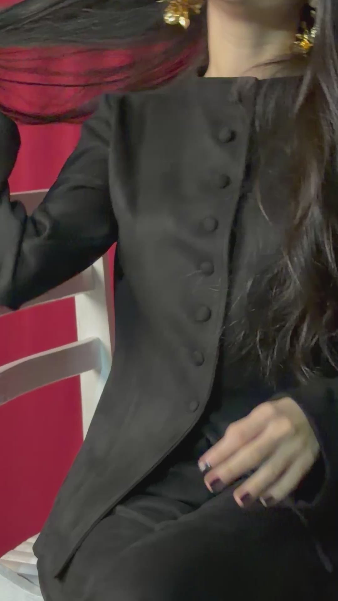 Our black suede set features coordinated suede buttons for a sleek, polished look that remains effortlessly wearable.